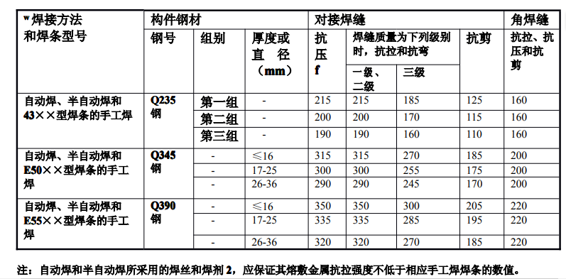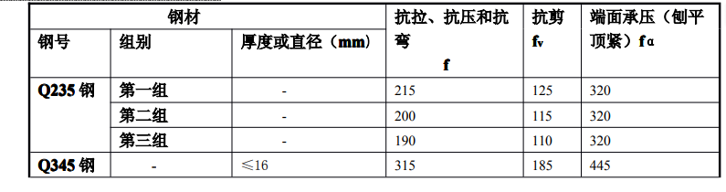 Q235鋼材的強度設(shè)計值和焊縫的強度設(shè)計值