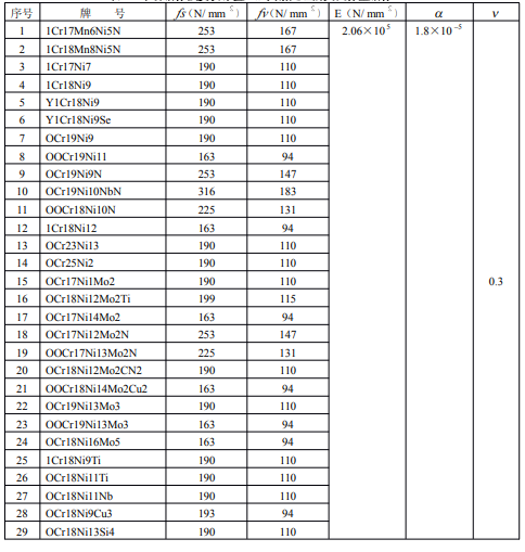 不銹鋼棒強度設計值(經固溶處理的奧氏體型鋼棒)
