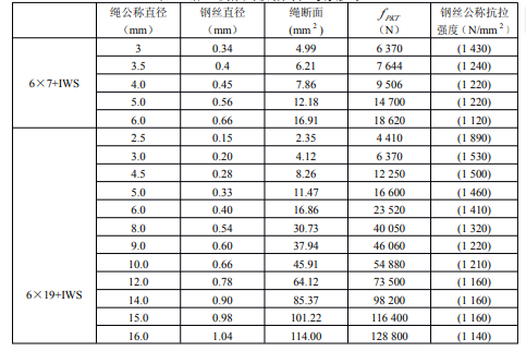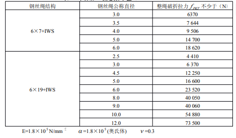 不銹鋼絲繩強度標準值(GB9944-88)