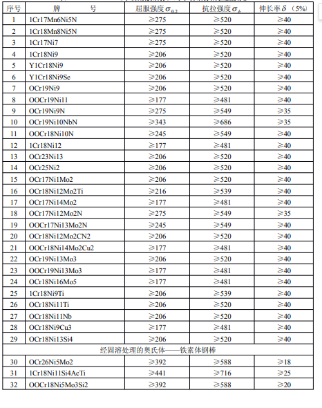 表4GB1220-92《不銹耐酸鋼棒》對不銹鋼棒的性能規(guī)定