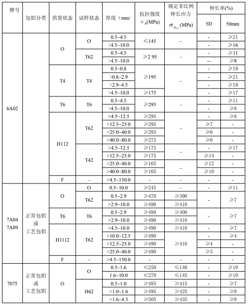 ②厚度小于等于0.7mm經鹽浴爐生產的退火板材,只能供應寬度小于或等于1200mm,長度小于或等于4000mm的板材。包覆層需包鋁的板材應進行雙面包覆,其包覆材料牌號及軋制后的包覆層厚度應符合表3的規定。