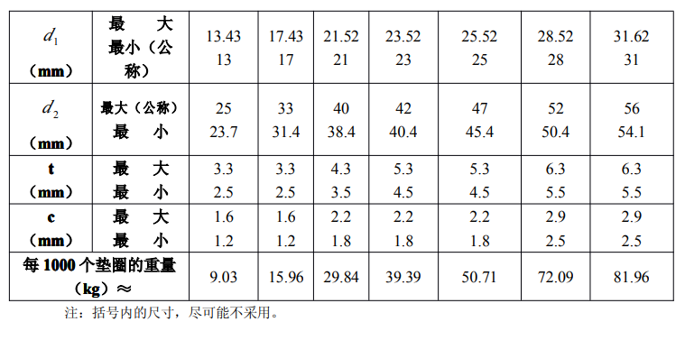 鋼結構用高強度墊圈的規格、尺寸及重量
